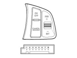 6. Disconnect the cruise control switch connector and then remove the switch (A).