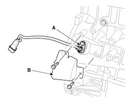 15. Remove the cover (B) and the CKPS (Crankshaft position sensor) (A).