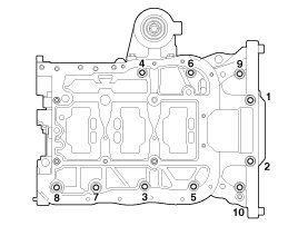 (2) Using the SST (09221-4A000), install and uniformly tighten the 10 bearing cap bolts, in several passes, in the sequence shown.