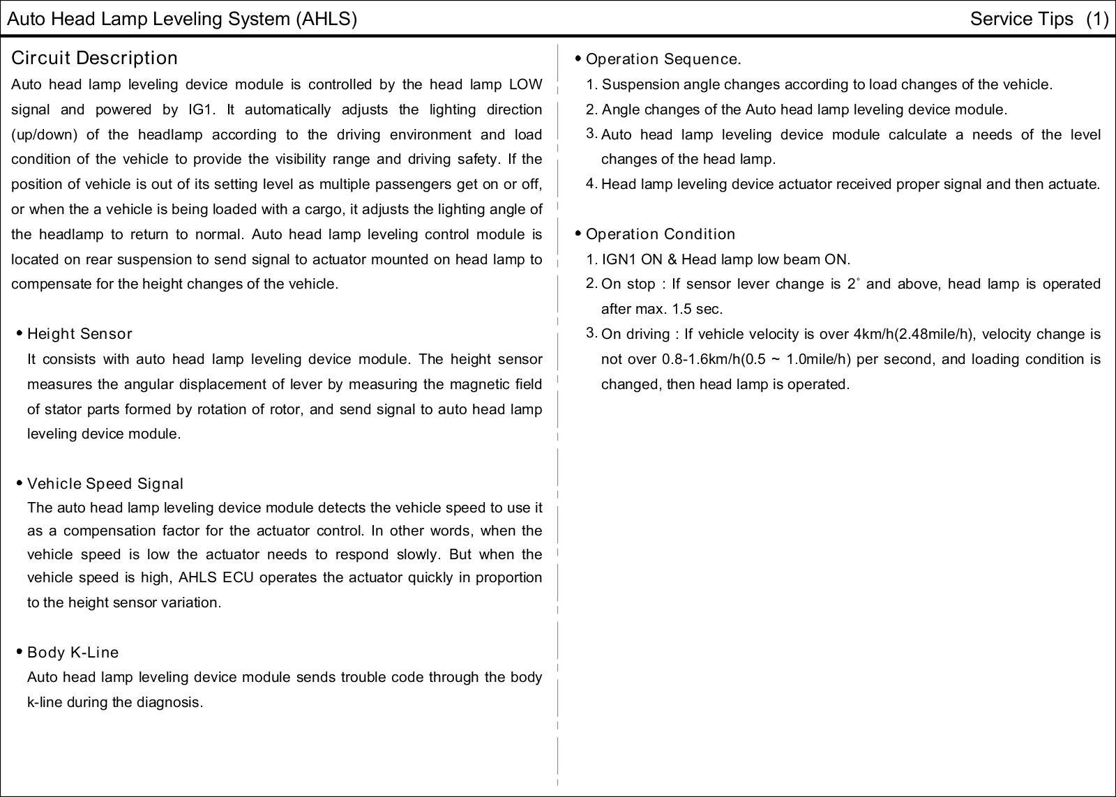Auto Head Lamp Leveling System (AHLS)