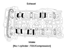 (2) Check that the TDC marks (A) of the CVVT sprockets are in straight line on the cylinder head surface as shown in the illustration.