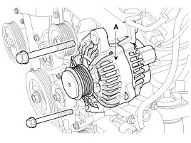 5. Pull out the through bolt and then remove the alternator (A).