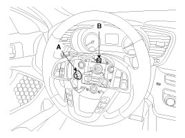5. Disconnect the lock nut (A) & connector (B) and the remove the steering wheel from the steering column shaft.