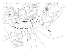 6. Loosen the screw and then remove the steering column upper (A) and lower (B) shroud.