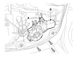 3. After loosening the mounting screws, then remove the power window motor (B).