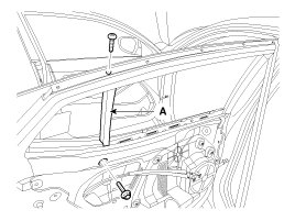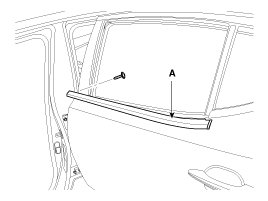 3. After loosening the mounting screw, then remove the rear door belt outer weatherstrip (A).