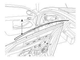 4. Using a screwdriver or remover, remove the rear door upper opening weatherstrip (A).