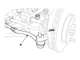 2. Disconnect the stabilizer link (B) with the front strut assembly (A) after loosening the nut.