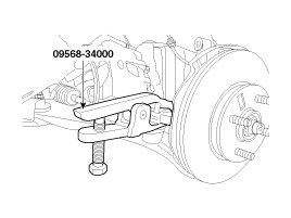 3. Loosen the nut and then remove the tie-rod end (A) with the front axle (B) by using SST(09568-34000).