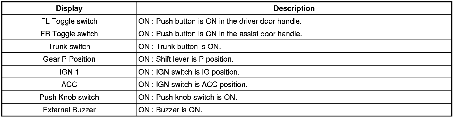 1. SMART KEY unit Input problem : switch diagnosis