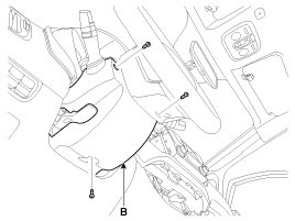 1. Remove the steering column upper (A) and lower (B) shrouds after removing the screws.