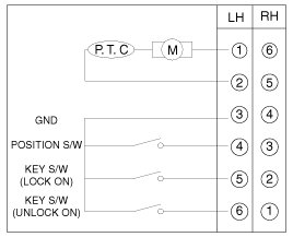 3. Check for continuity between the terminals and ground according to the table.