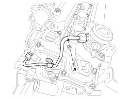 11. Disconnect the fuel hose (A) and the PCV (Positive crankcase ventilation) hose (B).