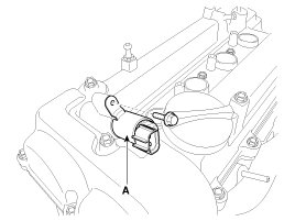 18. Remove the exhaust OCV (Oil control valve) adapter (A).