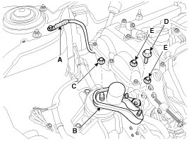 8. Disconnect the ignition coil connectors (A), the injector extension connector (B), the VIS (Variable intake system) connector (C) and the PCSV (Purge control solenoid valve) connector (D).