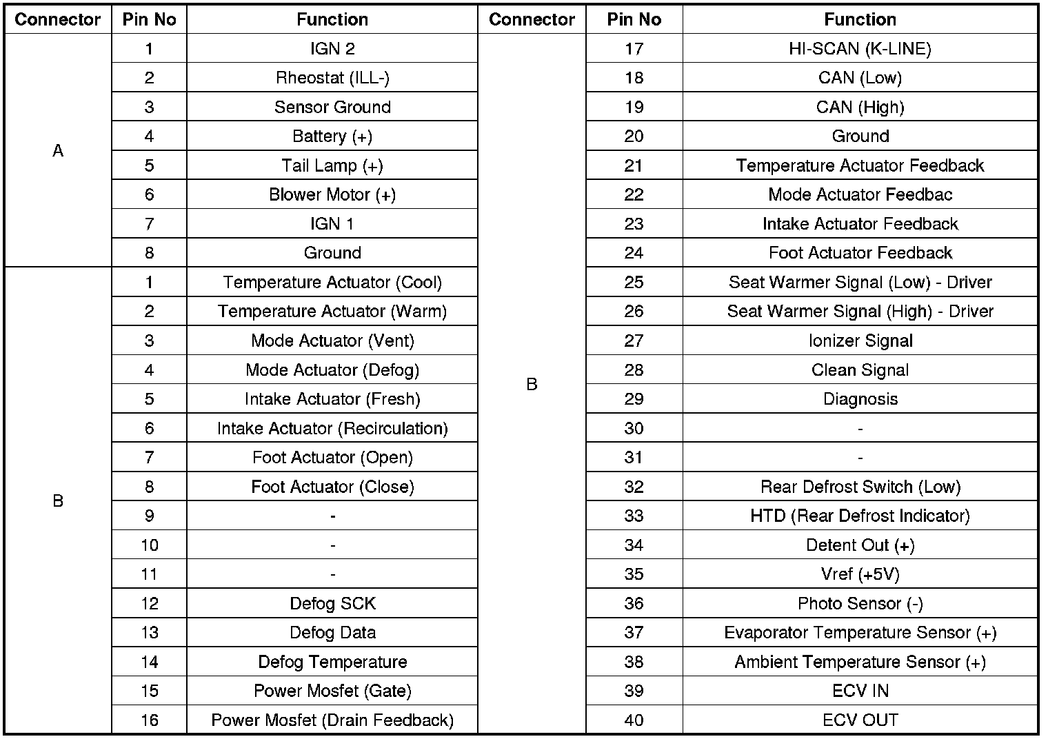 Connector Pin Function