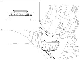4. Disconnect the connector(A). Release the lock of wiper switch using tool without removing the steering wheel and the clock spring.