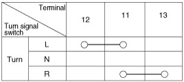 With the multifunction switch in each position, make sure that continuity exists between the terminals below. If continuity is not as specified, replace the multifunction switch.