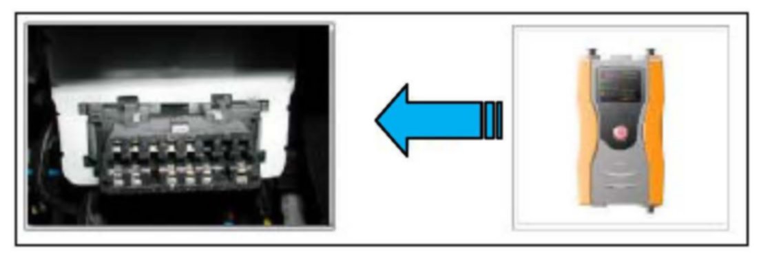 4. Connect the Main 16-pin DLC cable (GHDM - 241000) to the OBD-II connector, located under the driver's side of the instrument panel.