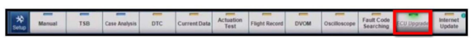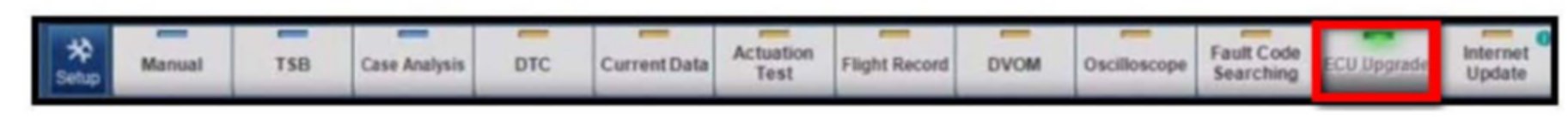 6. Once back at the GDS Main Screen, select ECU Upgrade from the bottom right-hand corner. Next select Auto Mode, and then Engine. Perform the ECM upgrade in accordance with normal GDS tool ECM upgrade procedures.