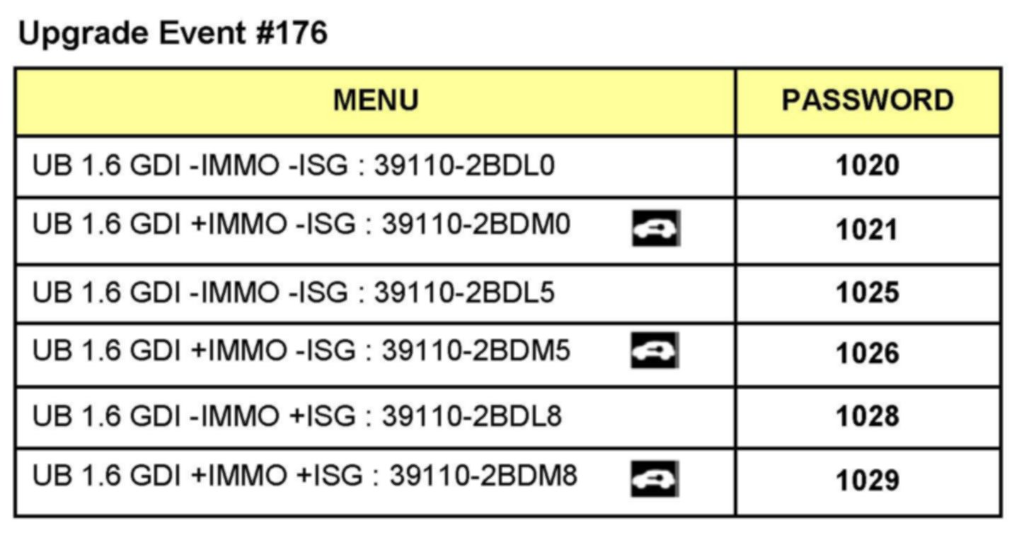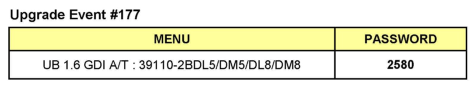 MANUAL MODE ECM UPGRADE PASSWORDS:
