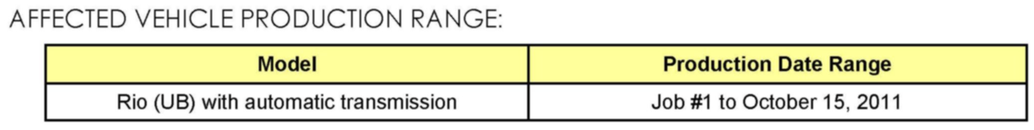AFFECTED VEHICLE PRODUCTION RANGE