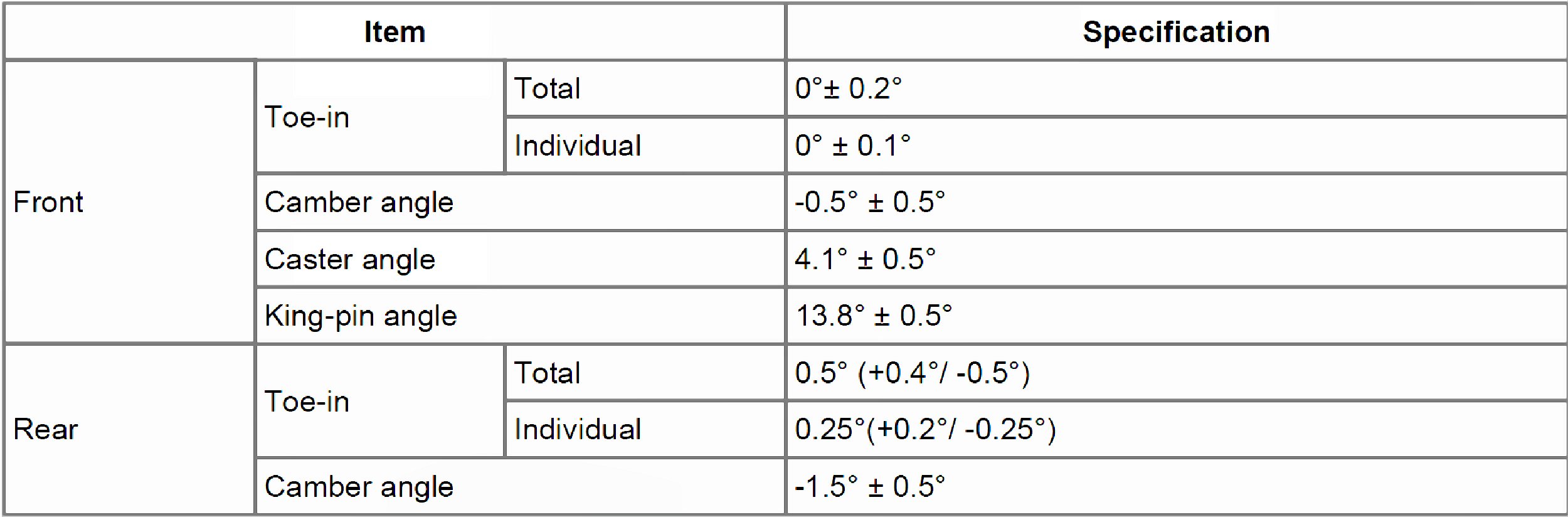 Wheel Alignment Specifications