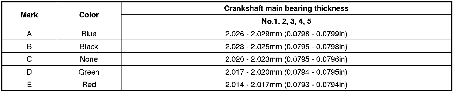 Main Bearing Size Codes