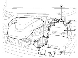 A. Air cleaner assembly (A) and air duct (B).