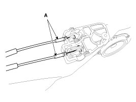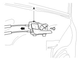 3. Disconnect the front door inside handle cable (A).