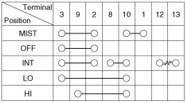 With the multifunction switch in each position, make sure that continuity exists between the terminals below. If continuity is not as specified, replace the multi-function switch.