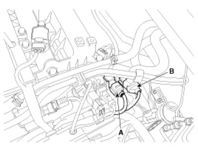 5. Connect the HO2S (Bank 1 / Sensor 1) connector (A) and HO2S (Bank 1 / Sensor 2) connector (B) (SULEV only).