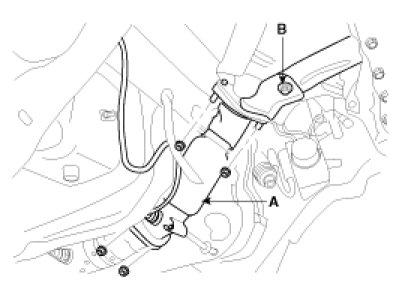 1. Disconnect the HO2S (Bank 1 / Sensor 1) connector (A) and the HO2S (Bank 1 / Sensor 2) connector (B) (SULEV only).
