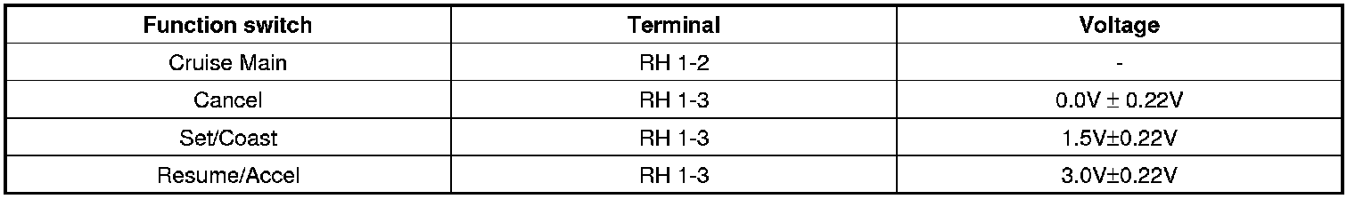 2. Measure voltage between terminals on the harness side connector when each function switch is ON (switch is depressed).