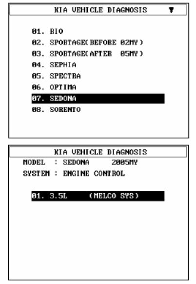 1. Select "Vehicle" and "Engine" (For example, SEDAN 3.5L V6).
