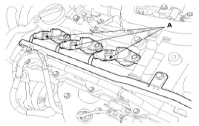 1. Remove the ignition coil connector(A).