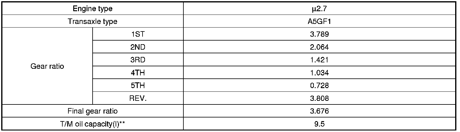 ** The quantity in the chart above is for the reference. The actual filling quantity of the automatic transaxle fluid must be set according to 'INSPECTION' or 'REPLACEMENT' procedure of the automatic transaxle fluid.