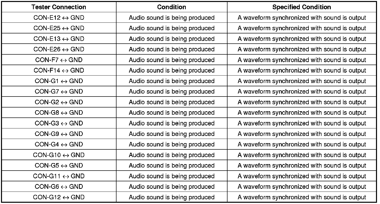 3. Check the output of audio head unit and external amplifier using the oscilloscope