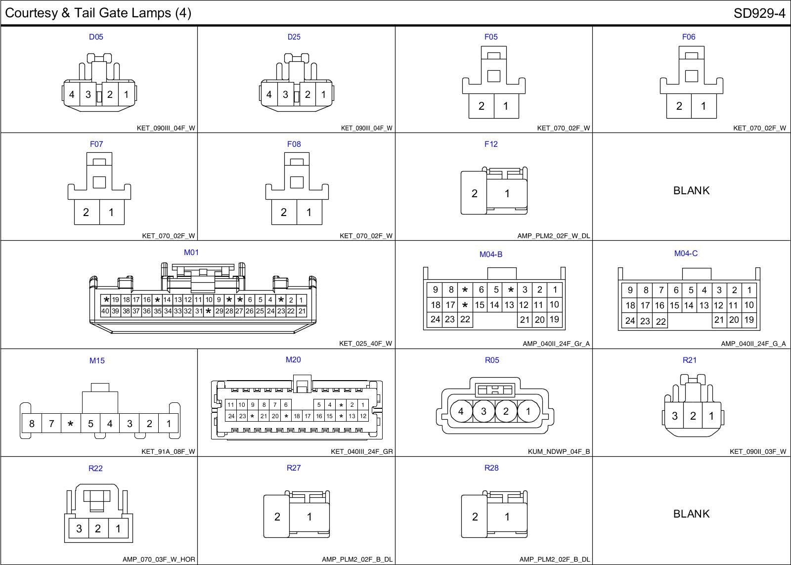 Courtesy & Tail Gate Lamps (4) Connector Pin Outs: