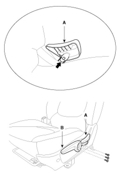 6. After disconnect the protector (A), then remove the seat cushion (B).