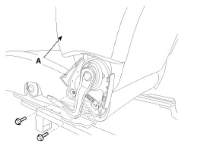 4. After loosening the mounting bolts, then remove the seat back assembly (A).