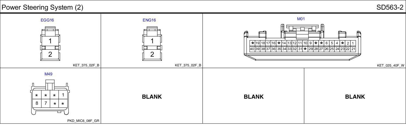 Power Steering System (2) Connector Pin Outs: