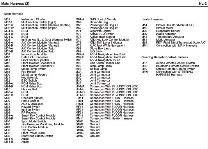 Main Harness Index: