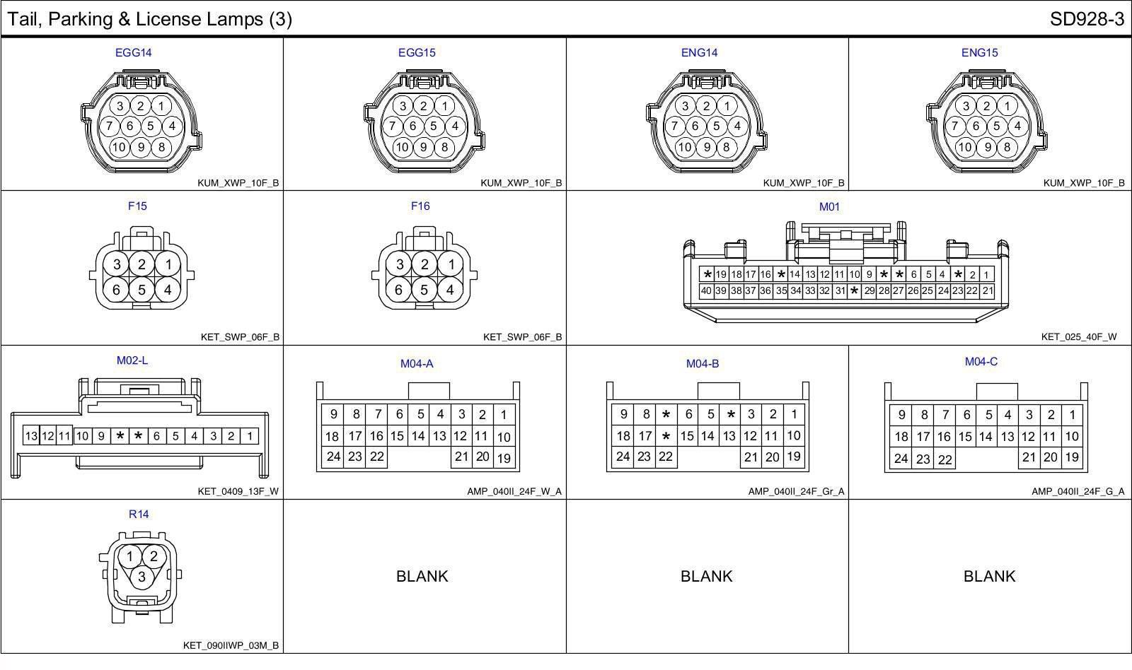 Tail, Parking & License Lamps (3) Connector Pin Outs: