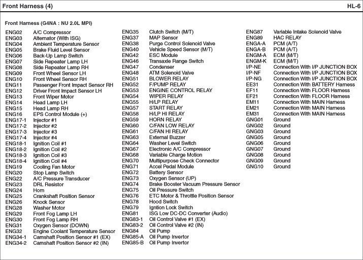 Front Harness Index: