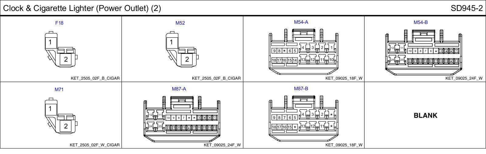 Clock & Cigarette Lighter (Power Outlet) (2) Connector Pin Outs: