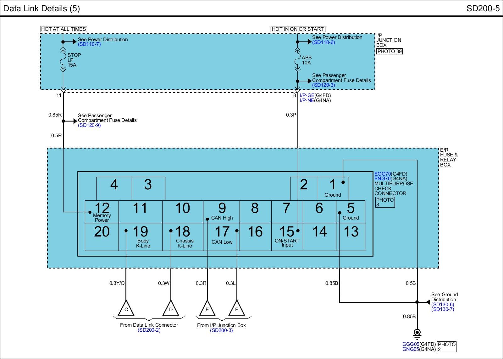 Data Link Details (7) Connector Pin Outs: