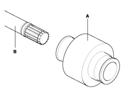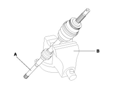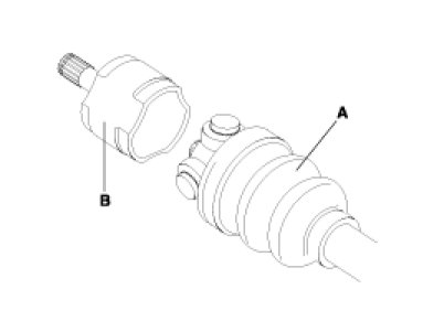 1. Remove the circlip (B) from the driveshaft spline (A).
