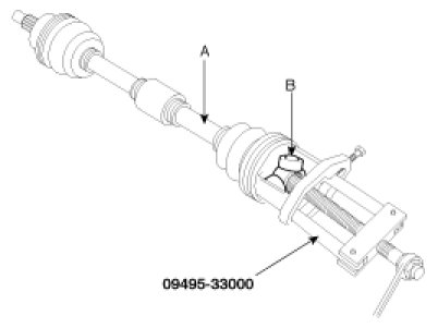6. Remove the spider assembly (B) from the driveshaft (A) using the special tool (09495-33000).