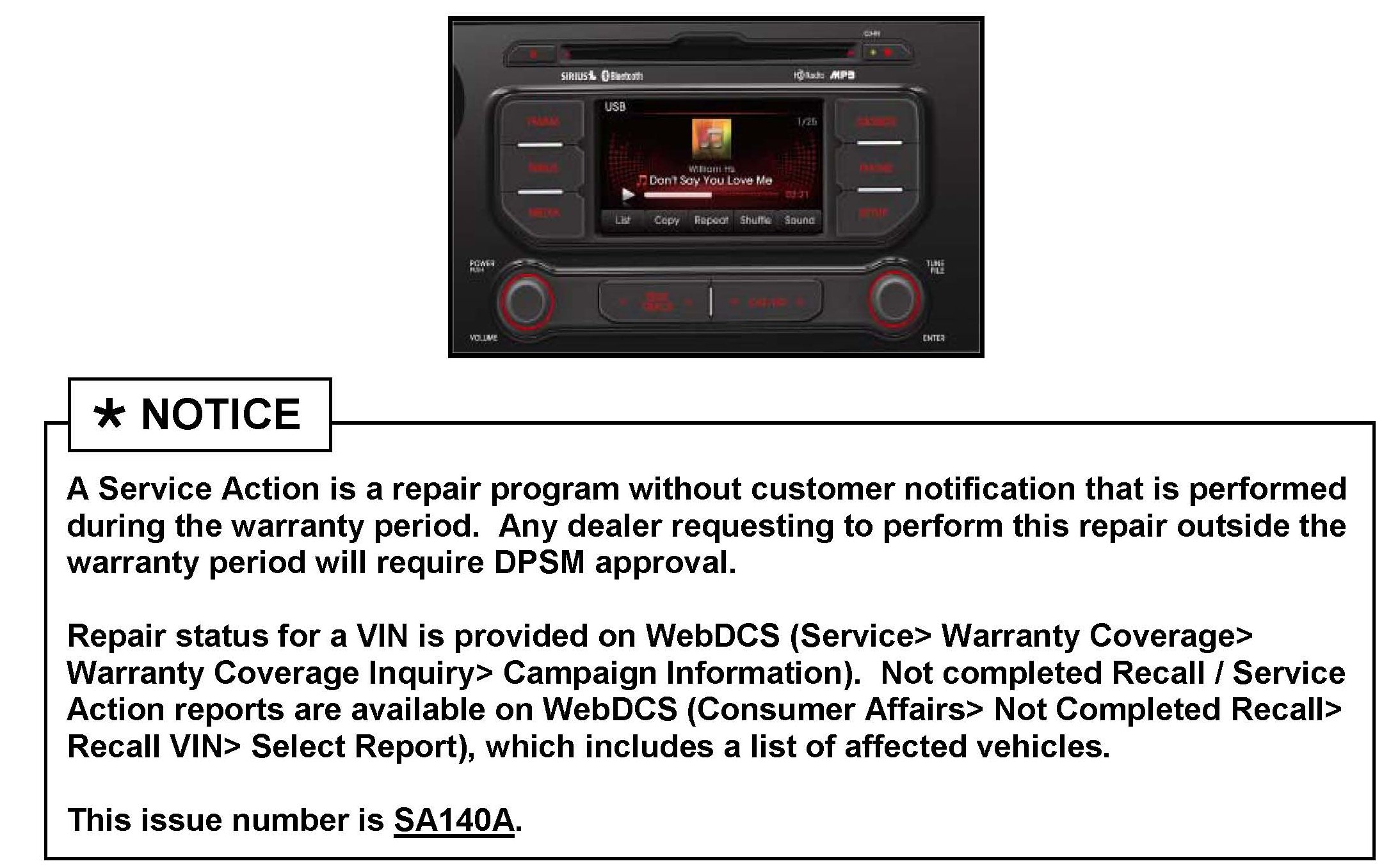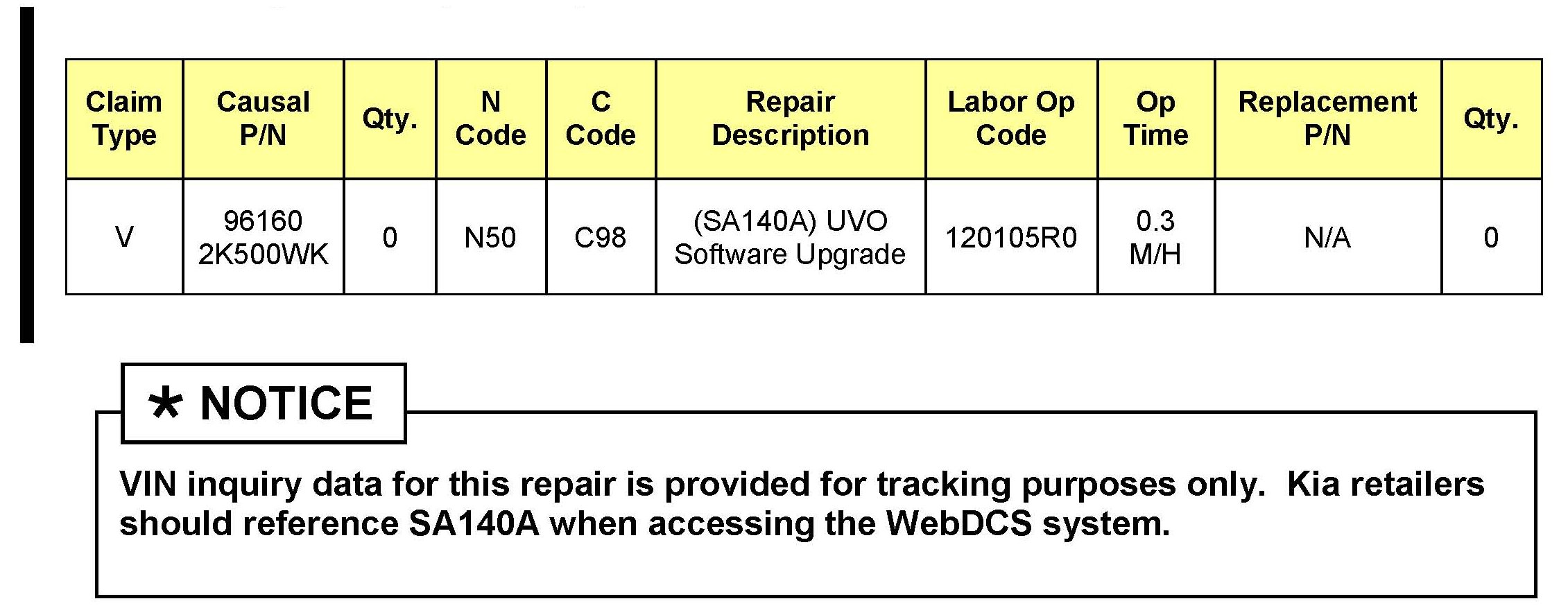 Campaign SA140A - UVO Software Upgrade